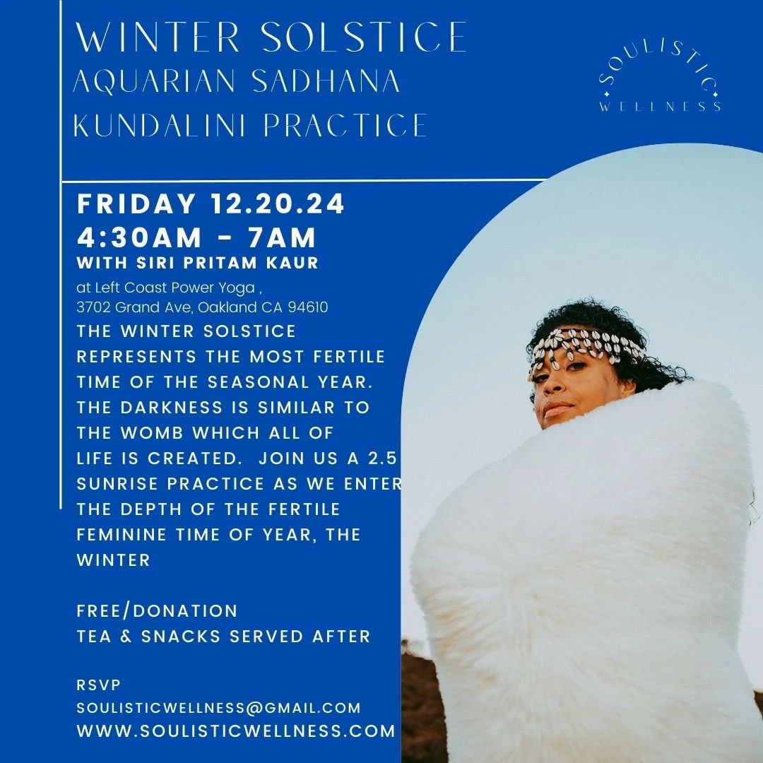Back to All Events Winter Solstice Aquarian Sadhana Friday, December 20, 2024 4:30 AM 7:00 AM Google Calendar ICS